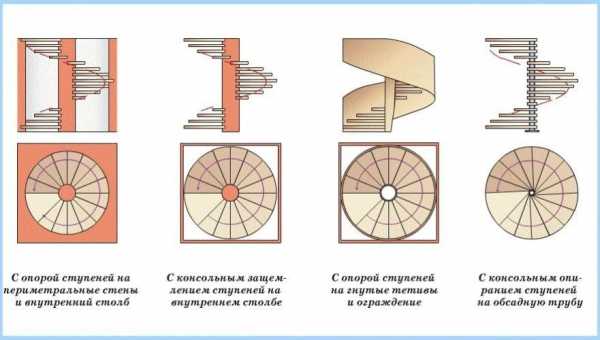Винтовые лестницы являются наиболее привлекательными и необычными конструкциями. Они могут различаться по материалам, применяемым для их изготовления и по стилю конструкции. Классифицируются винтовые лестницы в зависимости от способа опоры проступей (ступеней):
