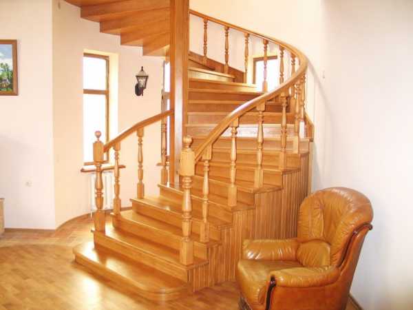Деревянная винтовая лестница с опорой на изогнутую тетиву