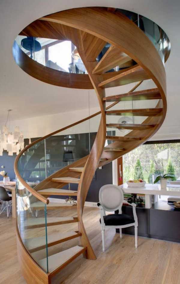 Стильная винтовая лестница из дерева украсит любой интерьер