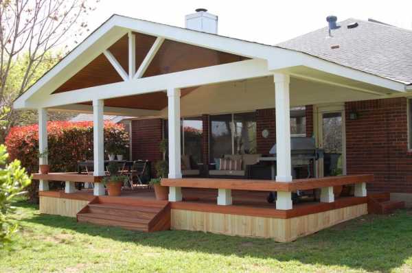 Первый этап – подготовка фундамента. В зависимости от проекта, это может быть ленточный фундамент для закрытой веранды или кирпичного, каменного сооружения.
