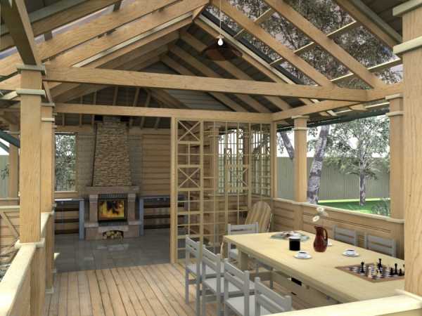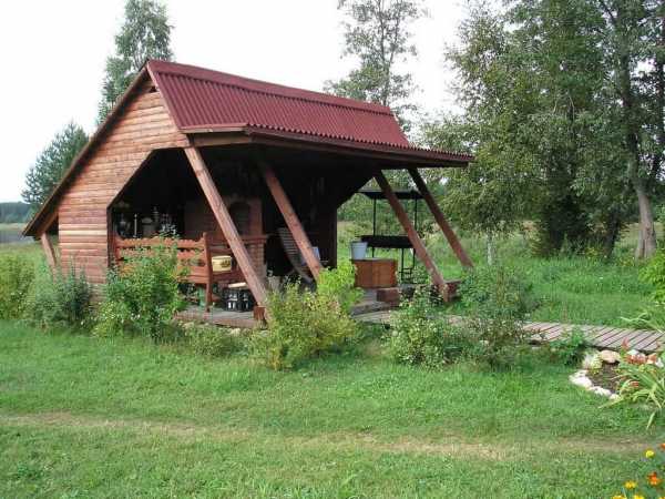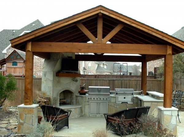 Для опытного плотника самостоятельно соорудить над летней кухней — навес от дождя, не составит никакого труда