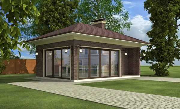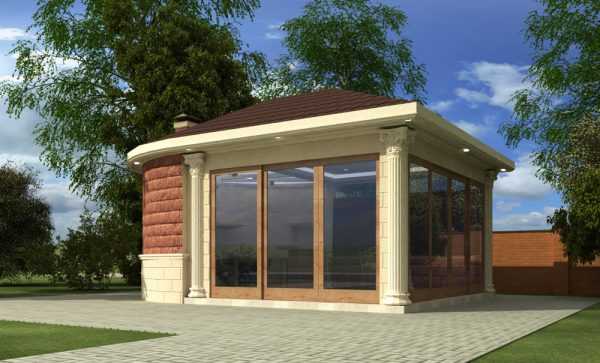 Нередко в качестве материала для стен используется оцилиндрованное бревно, кирпич или камень, который идеально подходит для постройки данного типа. С такими стенами постройка может использоваться круглогодично, главное произвести их качественное утепление изнутри.