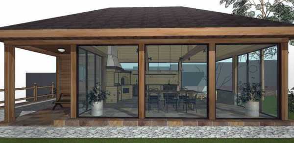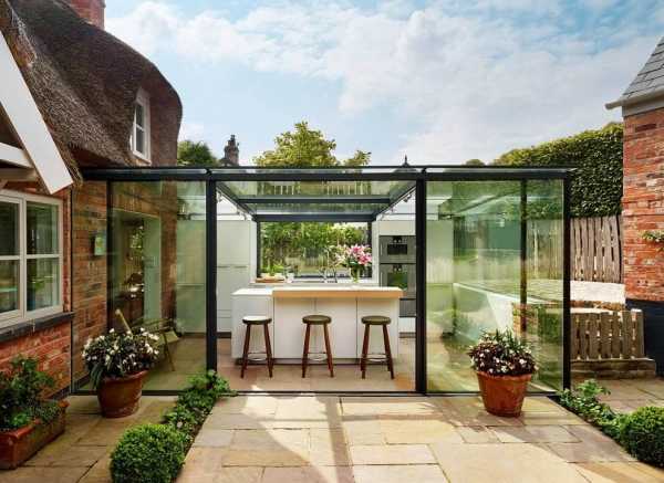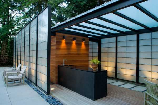 Летняя кухня на даче из современных светопрозрачных конструкций