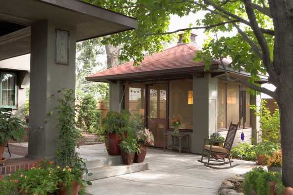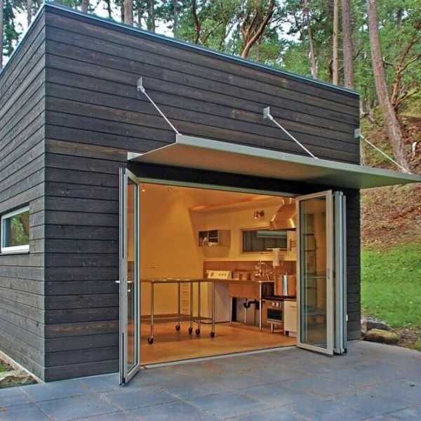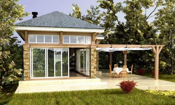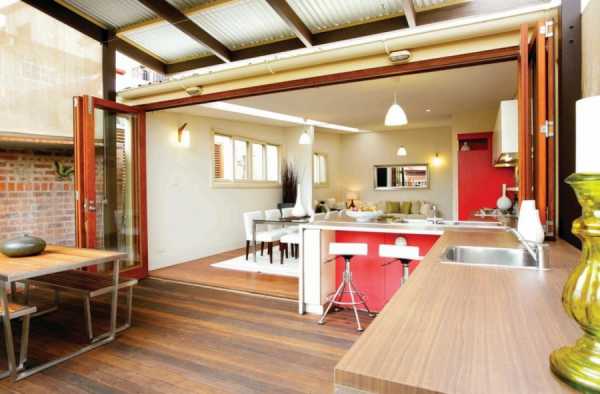 Пристроив к кухне небольшой навес, вы получите дополнительную площадь