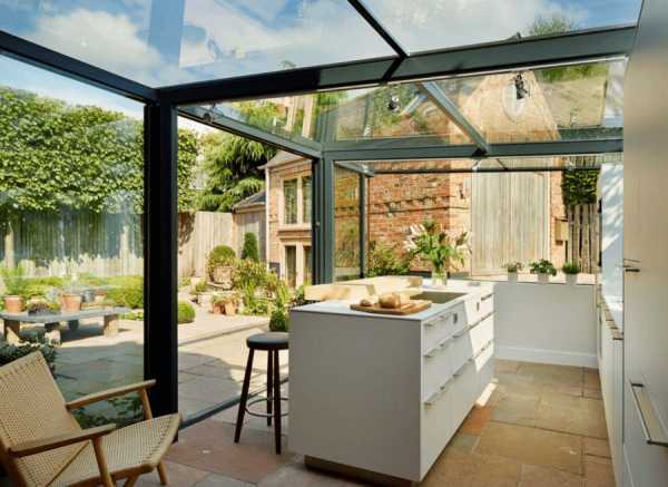 Большие окна от пола до потолка наполнят летнюю кухню ярким светом