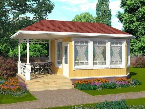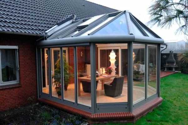 Для постройки закладывается фундамент, глубина которого соответствует глубине фундамента самого дачного дома, затем строятся стены, обшиваются и устанавливается крыша. Эффектно выделить помещение можно сделав одну из стен полностью стеклянной.