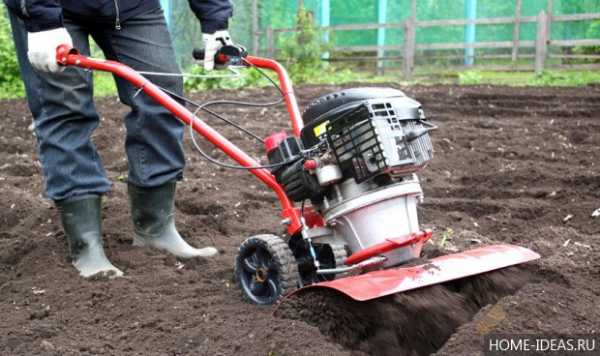 - Мощность двигателя подбирается с учетом величины обрабатываемого участка и плотности почвы. Лучше отдать предпочтение более мощной технике, чтобы не происходил перегрев двигателя после 5 минут работы.