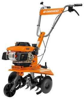У корейского культиватора Daewoo Power Products DAT 5055R есть несколько сильных сторон. В первую очередь это мощный двигатель (4,7 л. с.), который помогает обрабатывать не только свежевспаханную, но слежавшуюся почву. Цепная трансмиссия без потери мощности передает крутящий момент на фрезы. Система привода надежна и проста в обслуживании. Культиватор усилен стальной пластиной, которая постоянно контактирует с почвой. Опция реверс делает бензотехнику более маневренной. Это особенно актуально, учитывая вес агрегата (30 кг).
