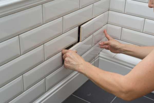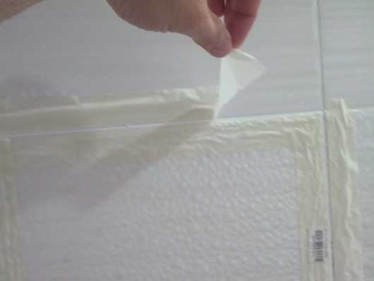 Далее, не дожидаясь пока высохнет герметик, необходимо удалить малярный скотч с поверхности плитки, см. рис.15.