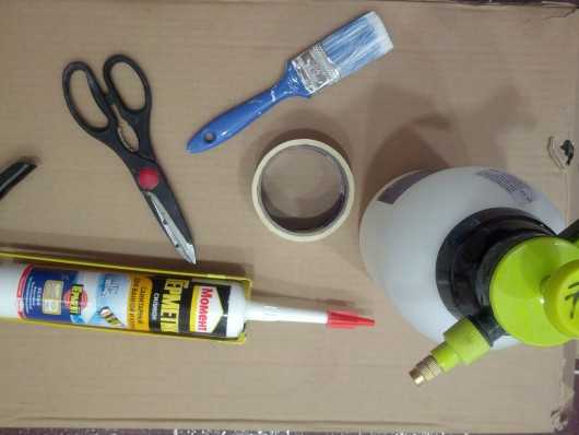 Чтобы силиконовый герметик не оставлял лишних следов на плитке обработаем всю поверхность мыльным раствором из пульверизатора