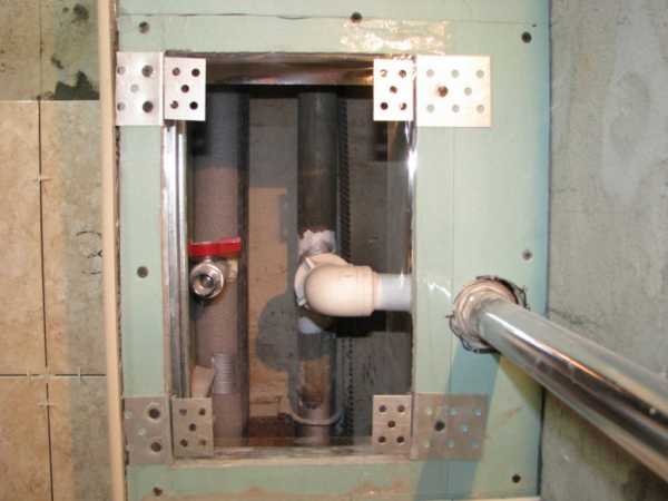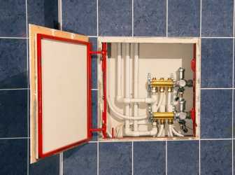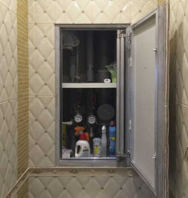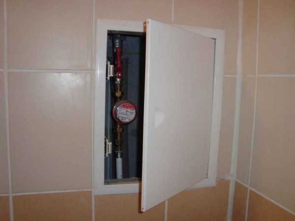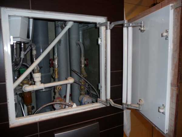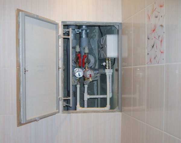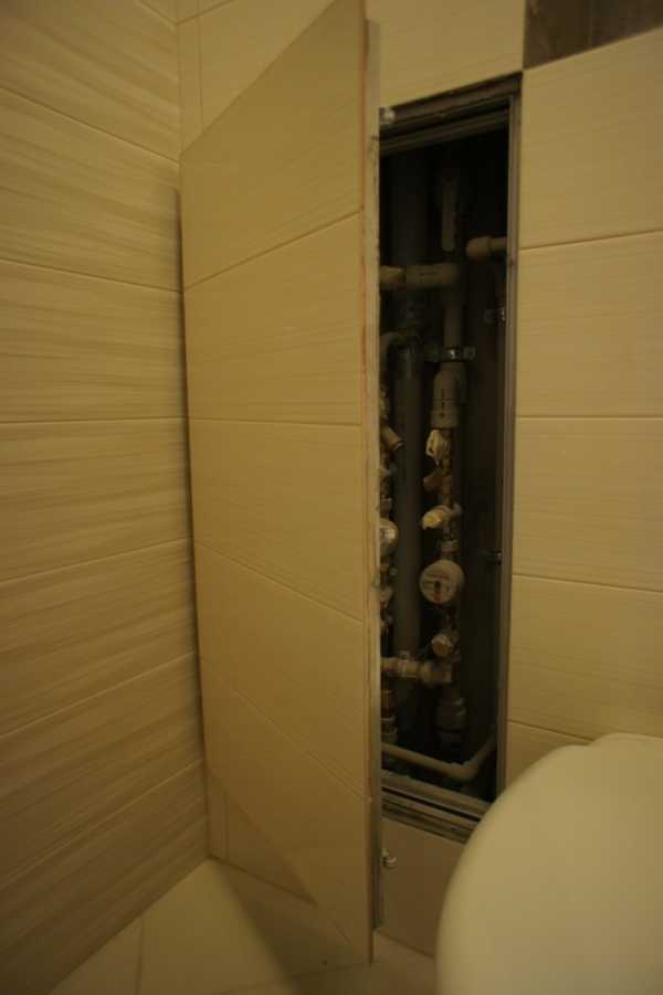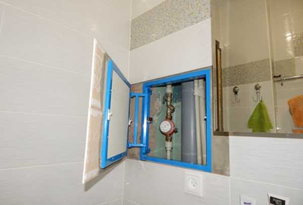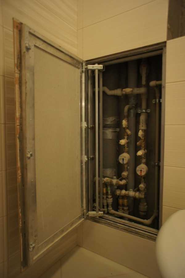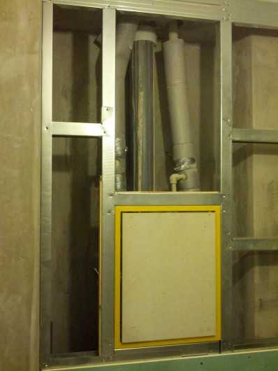 - на коробе – на уровне ревизии канализационного стояка, установки арматуры линий водопроводов, установки счетчиков учета холодной и горячей воды – для контроля и ремонта коммуникаций в случае необходимости;