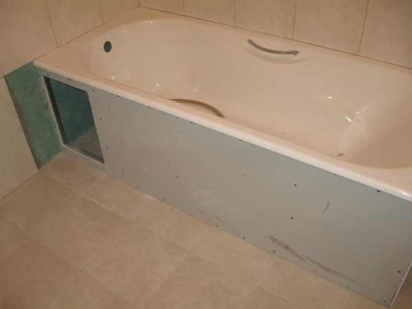 3. По инструкции сначала крепится гипсокартон, а затем по диагонали запускается люк и , как то развернувшись, монтируется на место. Этот момент, в случае с ванной и не получается. Ванна не позволяет зайти люку за обшивку.