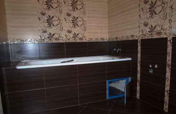 5. Подготовленную поверхность обшивки ванны и люка облицовываем плиткой. На следующий день – заполнение швов на плитке. Шов по периметру плиток на люке затиркой не заполняем. Так – же, затиркой не заполняем примыкание бортика ванны и плитки, верхнего ряда облицовки зашивки. Эти места будем заполнять силиконом.