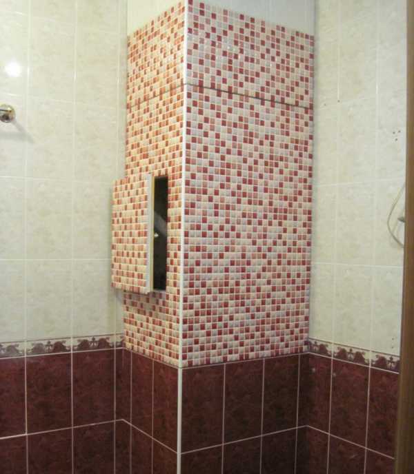 В другом случае (как в нашем) гипсокартон ( обшивки ванной), заходит на несущую обвязку люка . Плитка на дверце в этом случае, выступает на несколько сантиметров и примыкает на гипсокартон насухо, без клея.