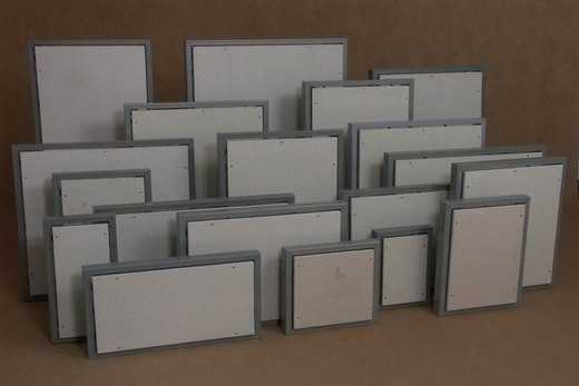 Любой ревизионный люк состоит из рамы и дверцы. Рама может быть регулируемой или нерегулируемой. В первом случае вы можете сами обрезать раму до нужного размера проема, а во втором – ее размер менять нельзя.