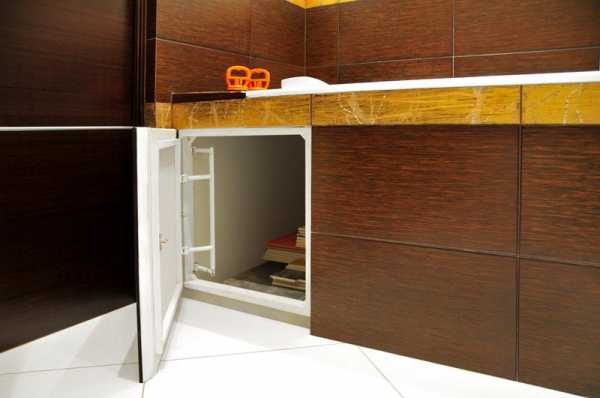 За небольшим лючком можно также удобно расположить скрытый шкафчик для хранения туалетных принадлежностей – гелей, мыла, лосьонов, мочалок, щеток – такое хранилище, незаметное для посторонних взглядов, упорядочит хранение мелочей и избавит комнату от беспорядка. Такой же шкафчик-нишу можно устроить под ванной, сберегая там всевозможные моющие и чистящие средства. Сделать место для хранения мелочей незаметным поможет люк невидимка, получивший свое название за способность быть скрытым от посторонних взглядов под плиткой.