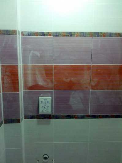 - на стенах, где выполнены ниши для хранения ванных принадлежностей, моющих средств, уборочного инвентаря.