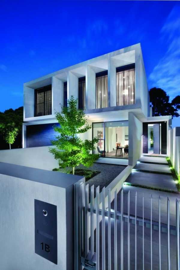 Металлический штакетник особенно хорош на участках в стиле модерн