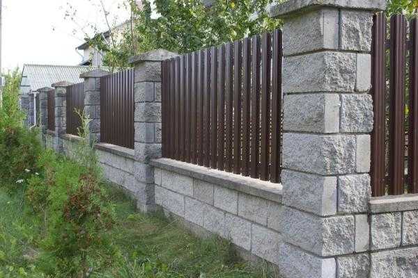Комбинированный забор из штакетника и бетона