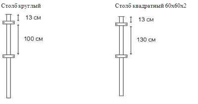 Размеры и частота установки столбов