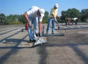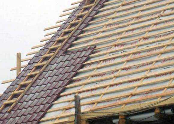 Перед тем как приступить к монтажным работам и созданию обрешетки, обязательно проводят стяжку несущих стен и обустраивают гидроизоляцию, которая предназначается для защиты нижней поверхности кровельных листов от воздействия влаги. Гидроизоляционный материал размещают на стропила под контрбруски. Гидроизоляционный материал можно укладывать двумя способами: раскатыванием рулонов параллельно или перпендикулярно карнизу. Помимо этого необходимо обустроить теплоизоляционный слой, который укладывают между стропилами и закрепляют степлером.