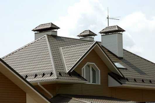 Выполняя установку металлочерепицы, следует обращать внимание на все детали монтажа. Если закрыть глаза на некоторые погрешности в монтаже, то в конце концов придется переделывать всю работу. Особенно аккуратно необходимо оформлять вентиляционные и дымовые трубы, выход для установки телевизионной антенны. Антенный вывод обрезают по верхней части. Далее его устанавливают на стойку. Все полученные стыки закрепляют силиконовым клеем и шурупами. Для вывода вентиляционной трубы, в черепице проделывают отверстие. Затем на проходной элемент металлочерепицы наносят силиконовый клей и для большей надежности его закрепляют шурупами.К герметичности всех швов, прилегающих к дымовой трубе, выдвигаются особые требования.
