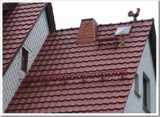 После того как укладка черепицы завершена, делают монтаж дополнительных элементов кровли: громоотводов, снегозадержателей, заграждений на кровле, переходов.