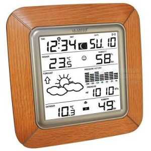 Данная модель стоит чуть дороже, чем предыдущая, и отличается от нее исключительно дизайном. А вот что до технических характеристик и прочих параметров, то здесь они идентичны. Она качественная, сделана из хороших материалов, все показатели легко читаются. Единственный недостаток, который часто отмечают покупатели в отзывах – это серьезные погрешности в показателях прогноза погоды.