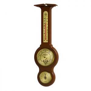 Термометр, в погодной станции, может быть: спиртовым, ртутным или механическим. За ртутное устройство было сказано выше, поэтому его не рассматриваем. Спиртовой термометр имеет хорошее время отклика на изменение температуры воздуха в помещении, но не самый лучший дизайн. Стрелочный термометр, который использует в качестве сенсора биметаллическую пружину, прекрасно реагирует на любые изменения температуры воздуха, к тому же имеет прекрасный дизайн, стилизованный под ретростиль.