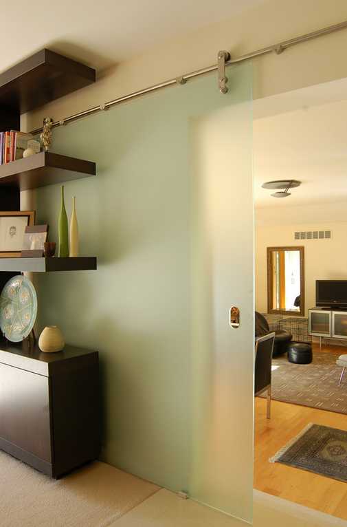 Одним из распространенных недостатков стеклянных конструкций является прозрачность, если вы не нуждаетесь в посторонних взглядах, можно использовать матовые поверхности. Они будут пропускать достаточно света, при этом то, что делается за дверьми, видно снаружи не будет.