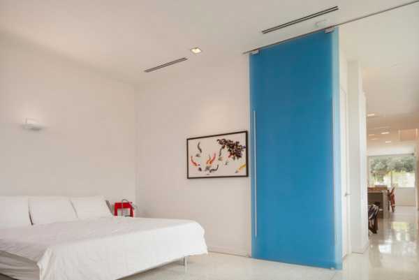 Стеклянные раздвижнве двери оригинально смотрятся в современном интерьере