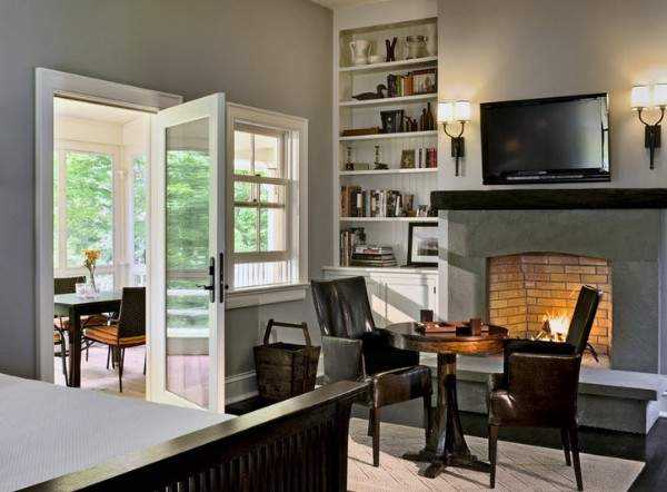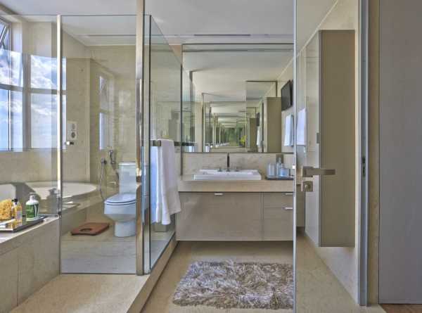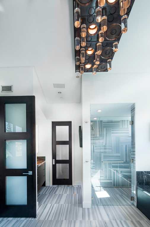 Стеклянные двери придают законченный вид всему дизайну помещению