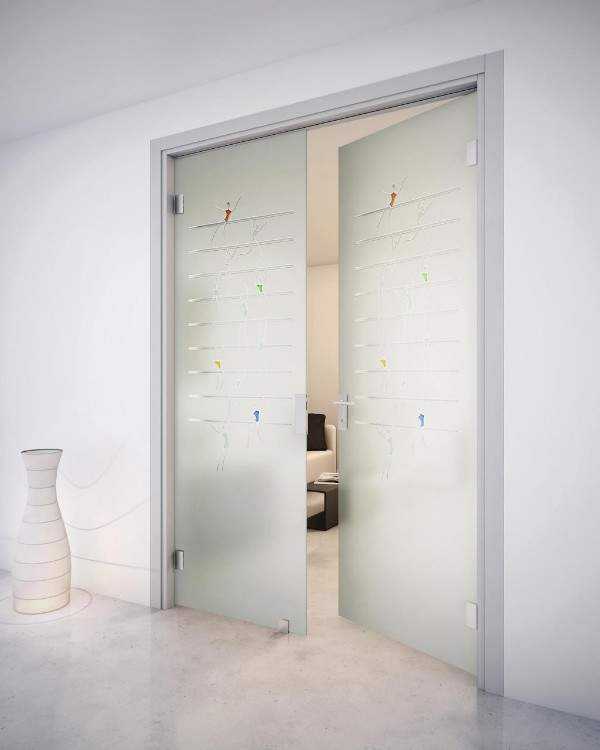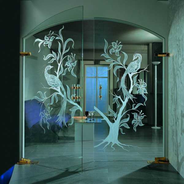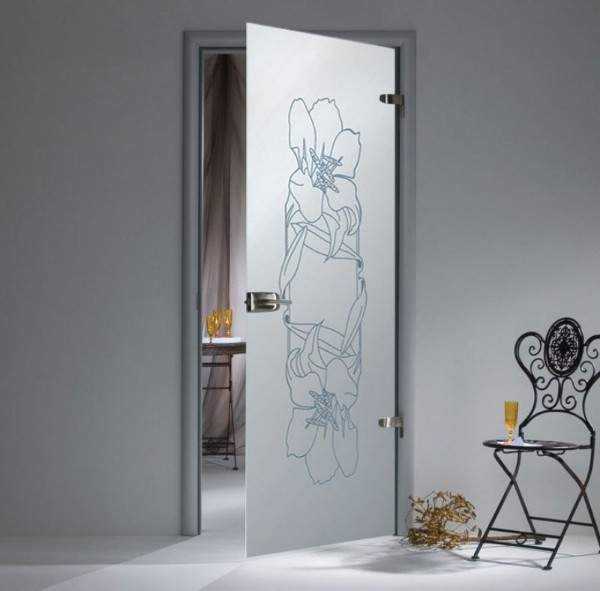 Межкомнатные стеклянные двери отличаются не только разнообразием конструкций, но также известны и невероятным количеством дизайнерских решений. В качестве материала для их изготовления может использоваться матовое, прозрачное и даже тонированное стекло. По-настоящему волшебно в интерьере смотрятся сдвижные стеклянные двери с пескоструйным рисунком. Именно он считается самым популярным и дешевым вариантом декора для стеклянных дверей.