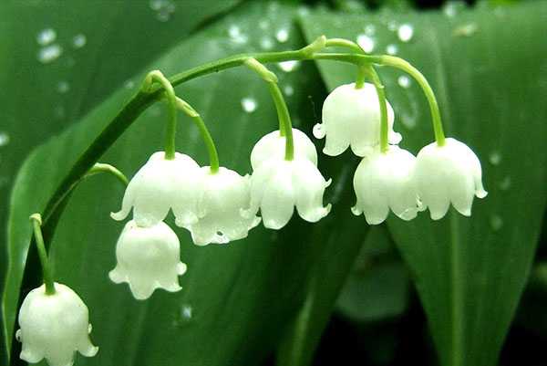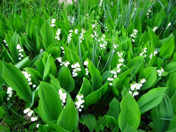 Классика весенней клумбы – лесные ландыши, зацветающие в мае. Благодаря ползучим корневищам растения зимуют. Весной на клумбах сначала появляются свернутые в плотные трубки кожистые листья, затем над развернувшимися розетками поднимаются цветоносы высотой до 30 см. В каждом соцветии насчитывается от 6 до 20 белых или розоватых, ароматных колокольчиков. Цветение длится до начала лета, а потом на месте цветов появляются красные округлые ягоды.