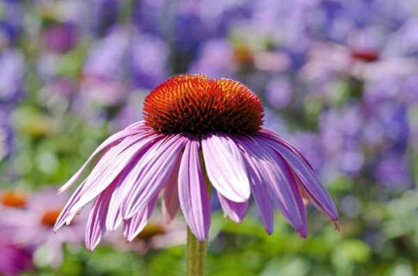 У многих в аптечке есть настойка из этого растения. А вот в садах многолетние неприхотливые цветы встречаются не так часто. И зря, ведь даже в самую сильную жару эхинацея порадует вас крупными цветками. Их классический окрас — фиолетовый с выпуклой коричневой конусообразной сердцевиной, но есть сорта, у которых лепестки красные, желтые, оранжевые или белые. Эхинацея привлекает бабочек и птичек своим ароматом и зернышками.