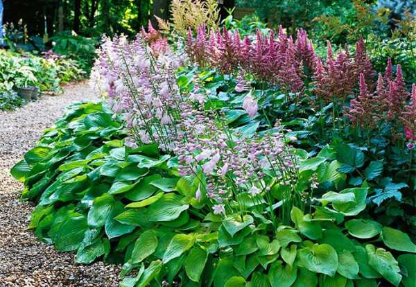 - Лилейник, дицентра и астильба. Эти три растения объединяет любовь к затененным уголкам сада. Крупные ажурные соцветия и блестящая листва делают данные декоративные растения очень привлекательными.