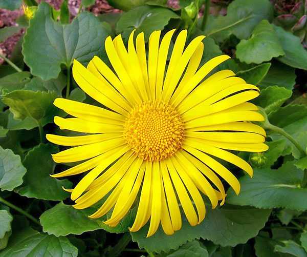 На стыке весны и лета эстафету цветения у луковичных принимают многие корневищные многолетники. Не исключение – яркий дороникум с крупными желтыми соцветиями-корзинками, напоминающими ромашки. Цветы раскрываются на прямостоячих, голых или облиственных стеблях высотой 30–80 см. Неприхотливые цветы для дачи и сада высаживают на солнце или в прозрачной тени, но не под кронами деревьев.