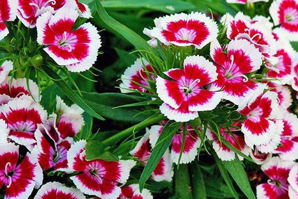 В июне раскрываются многоцветные шапки турецкой гвоздики. Яркие с зубчатыми лепестками цветки совсем невелики, но собранные в плотные соцветия, они великолепно оживят дачный участок, создадут летнее настроение и раскрасят клумбы во все оттенки от белого до насыщенно-пурпурного.