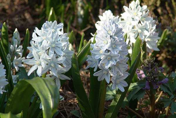 - Нарциссы, крокусы, мускари и гиацинты. Все перечисленные растения относятся к раннецветущим. Единственное условие для их успешного развития – отсутствие сильных ветров.