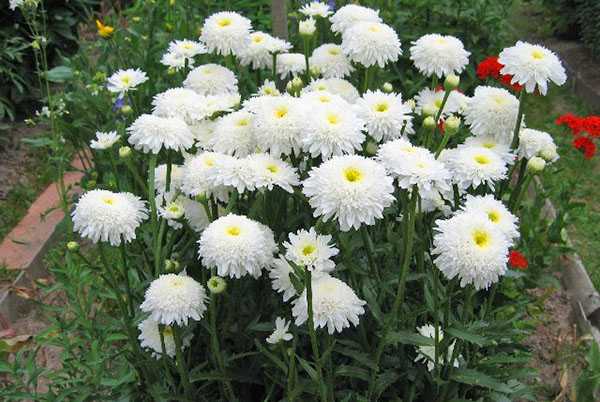 - Садовая ромашка и пиретрум. Ромашка цветет долго и не требует большого внимания и ухода. В конце сентября она самостоятельно размножается корневищами. В отличие от ромашки, цветы пиретрума имеют более яркую окраску. Впрочем, ромашки превосходят пиретрумы размерами.