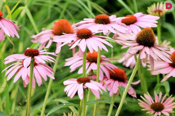 - Рудбекия и эхинацея. Оба растения очень похожи цветами на разноцветные ромашки. Они украсят сад в летний и осенний период. Среди многолетников они считаются наиболее высокорослыми. Это обстоятельство необходимо учитывать при их размещении на клумбе.