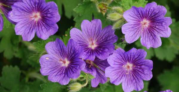 С мая и до конца лета продолжается цветение удивительно трепетных гераней. Единичные или собранные в соцветия венчики всех оттенков розового, пурпурного, лилового и синего цветов недолговечны. Всего день, и на месте увядшего цветка появляется новый.