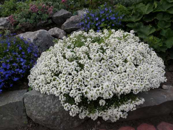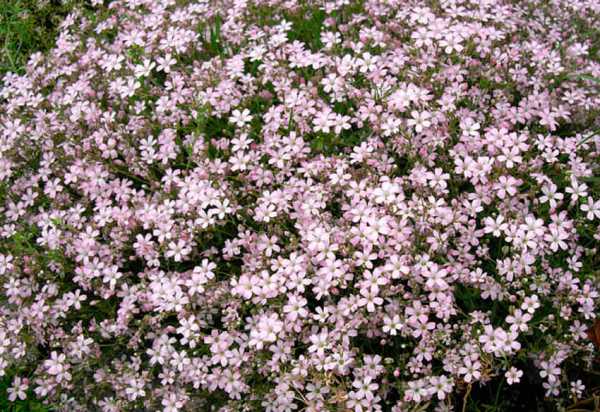 Почвопокровное или стелющееся растение со стеблями длиной от 20 до 30 см поле посадки быстро образует плотные, напоминающие подушки куртины, покрытые кистями небольших белых, розовых или лиловых цветков.