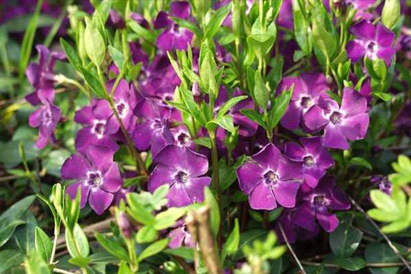 Теневыносливых садовых культур не столь много – ярким примером одной из них является барвинок. Почвопокровное растение или небольшие полукустарнички цветут в самом разгаре весны и быстро распространяются, без труда укореняясь при контакте с грунтом.