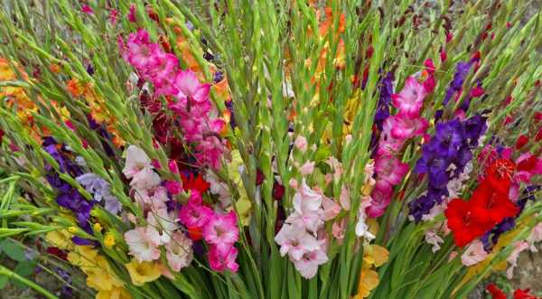 - Гладиолусы. Цветок, который, согласно легенде, вырос из гладиаторского меча, не может быть капризным. Впрочем, ухоженные цветы заметно отличаются от тех, которые предоставлены сами себе. Гладиолус – любитель солнца, обильного полива и рыхлой суглинистой или супесчаной почвы.
