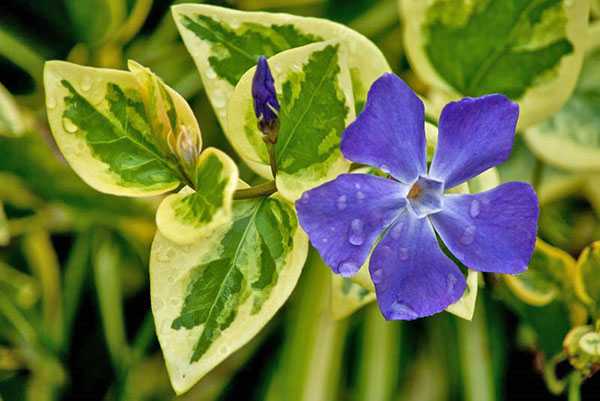 Культурные сорта барвинка создают эффектные куртины из свежей зелени с пятнами всех оттенков синего, белого, розового и пурпурного. В распоряжении садоводов экземпляры с простыми и махровыми венчиками, гладкой и пестрой листвой.