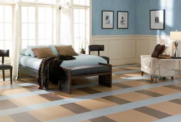 Например, в спальню подойдет покрытие в бежевых и пастельных тонах желательно без узоров. Специалисты рекомендуют подбирать линолеум с имитацией древесины или натурального камня. Для гостиной линолеум подбирается в зависимости от дизайна помещения. Это могут быть теплые оттенки и яркие тона.