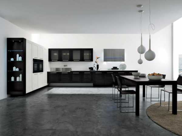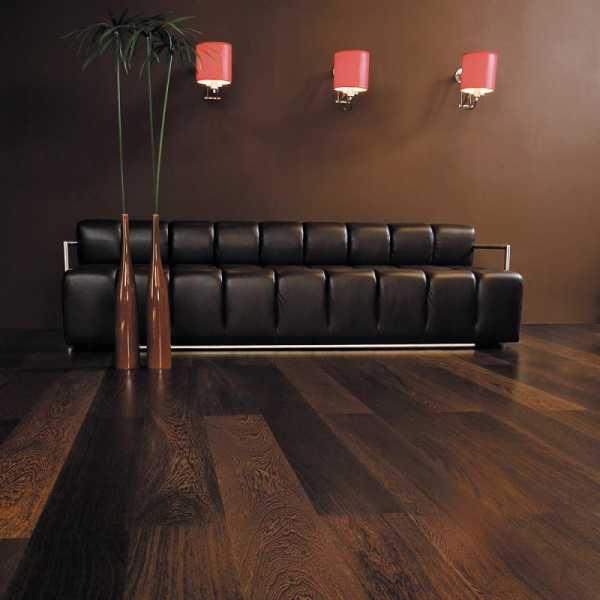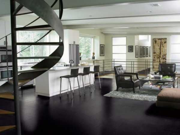 В случае если помещение светлое само по себе и имеет хорошее освещение, то прекрасно подойдёт покрытие тёмного цвета. Оно позволит соединить воедино всё пространство и не будет быстро пачкаться.