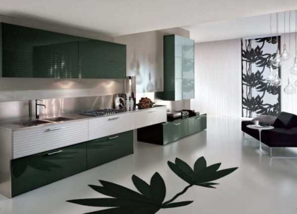 Интересным решением по зонированию пространства кухни, на которое стоит обратить внимание, это комбинирование керамической плитки и линолеума. Здесь предполагается достаточно большой диапазон цветовых и текстурных сочетаний. Все зависит от вкусов и фантазии владельцев кухонной территории.