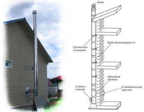 Особенности конструкции дымохода через стену